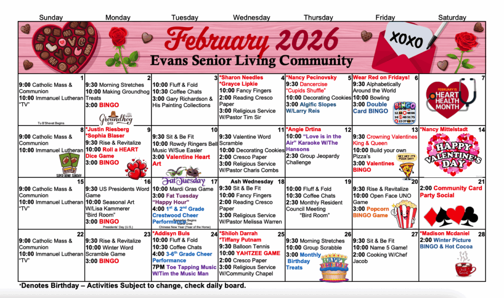 Skilled Nursing Activity Calendar- February 2026